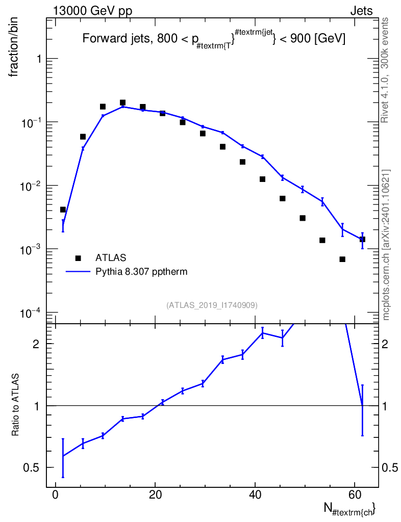 Lines: data, pythia8 8.307 pptherm |
