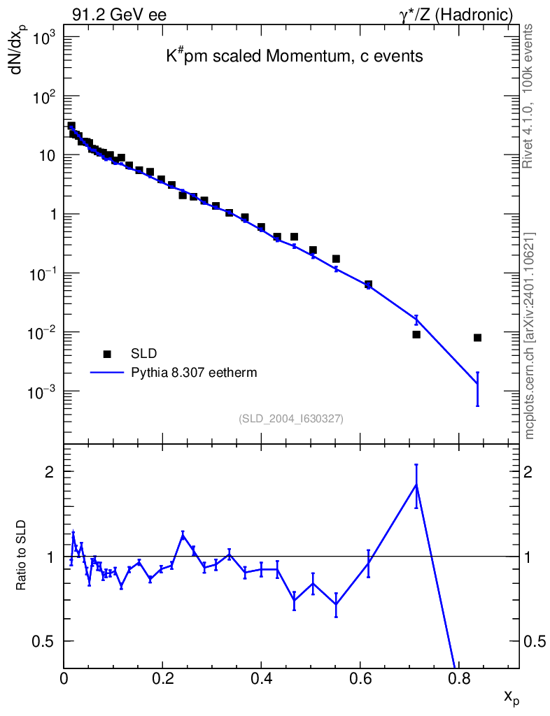 Plot of xK in 91.2 GeV ee collisions