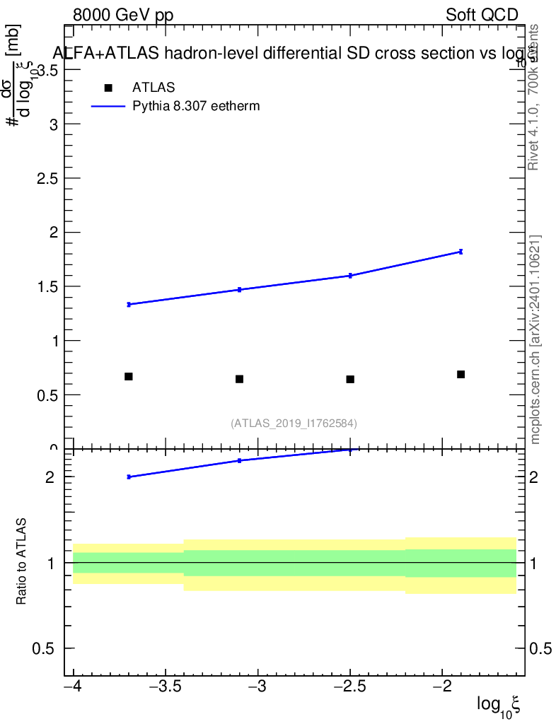 Lines: data, pythia8 8.307 eetherm |