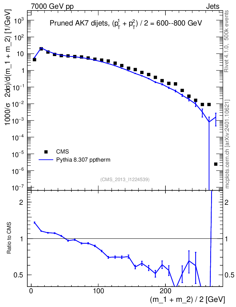 Lines: data, pythia8 8.307 pptherm |