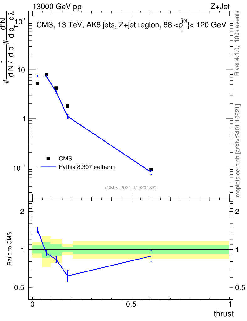 Lines: data, pythia8 8.307 eetherm |