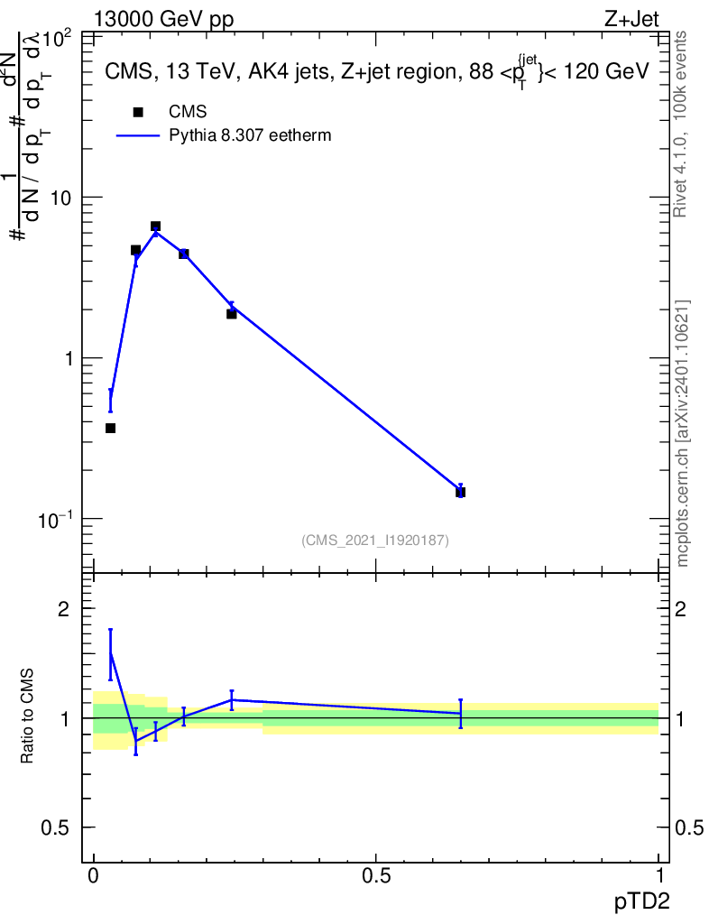 Lines: data, pythia8 8.307 eetherm |