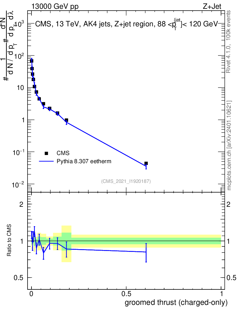 Lines: data, pythia8 8.307 eetherm |