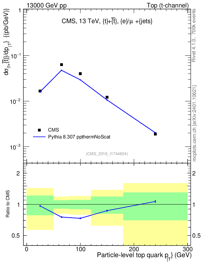 Lines: data, pythia8 8.307 ppthermNoScat |