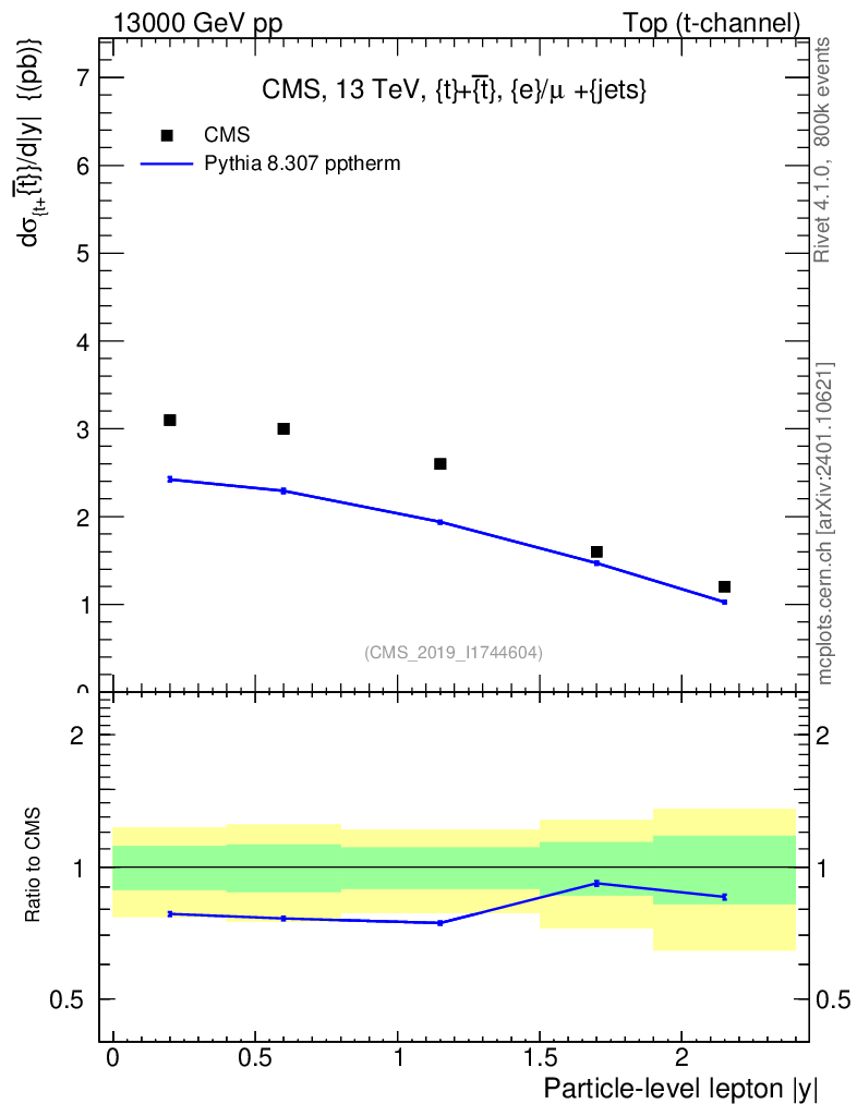 Lines: data, pythia8 8.307 pptherm |