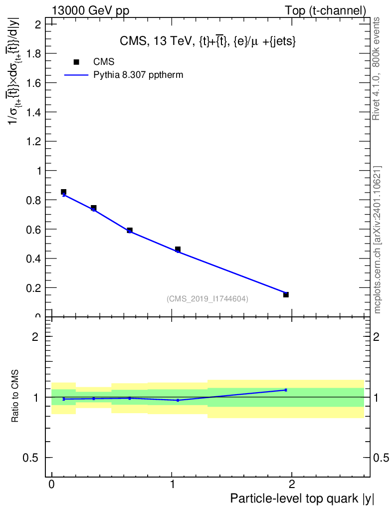 Lines: data, pythia8 8.307 pptherm |