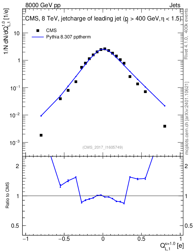 Lines: data, pythia8 8.307 pptherm |