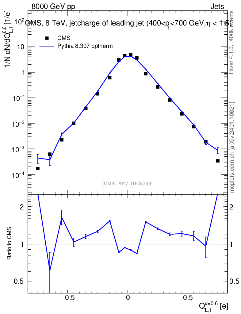 Lines: data, pythia8 8.307 pptherm |