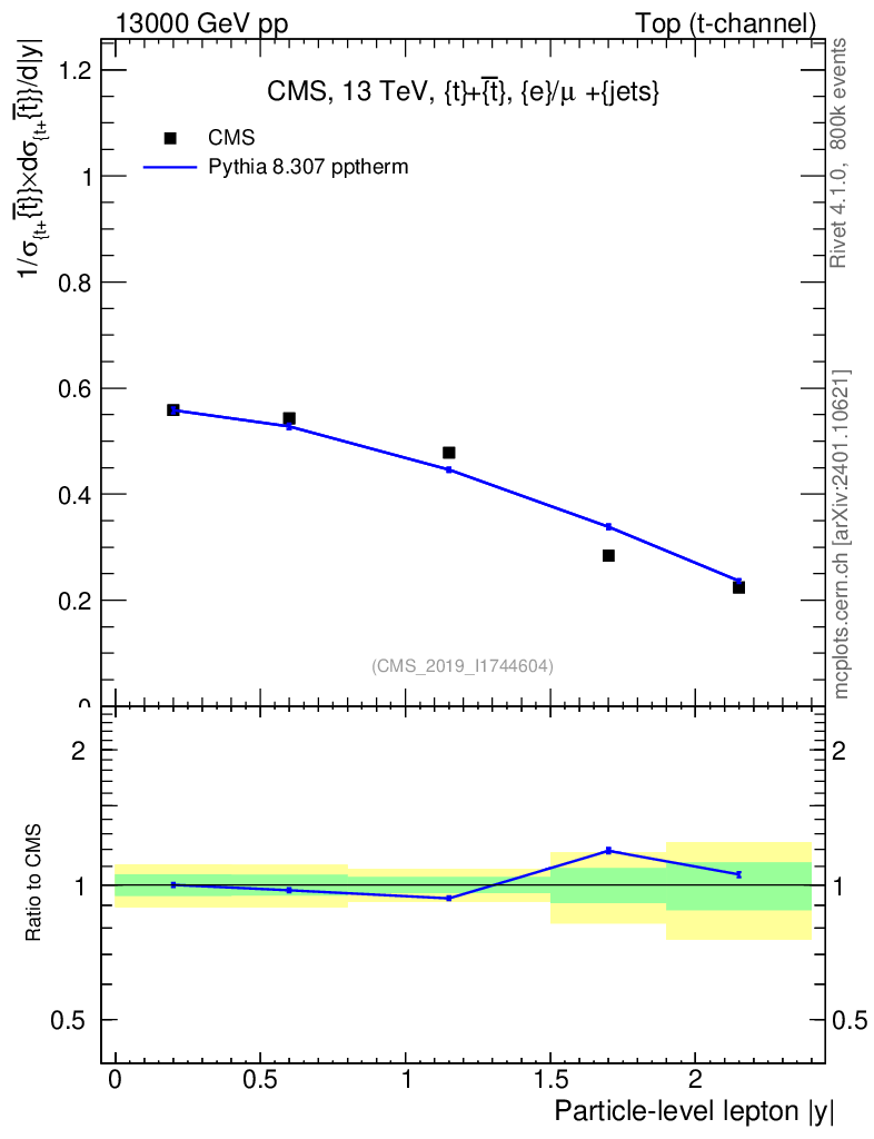 Lines: data, pythia8 8.307 pptherm |