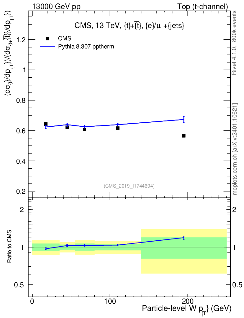Lines: data, pythia8 8.307 pptherm |