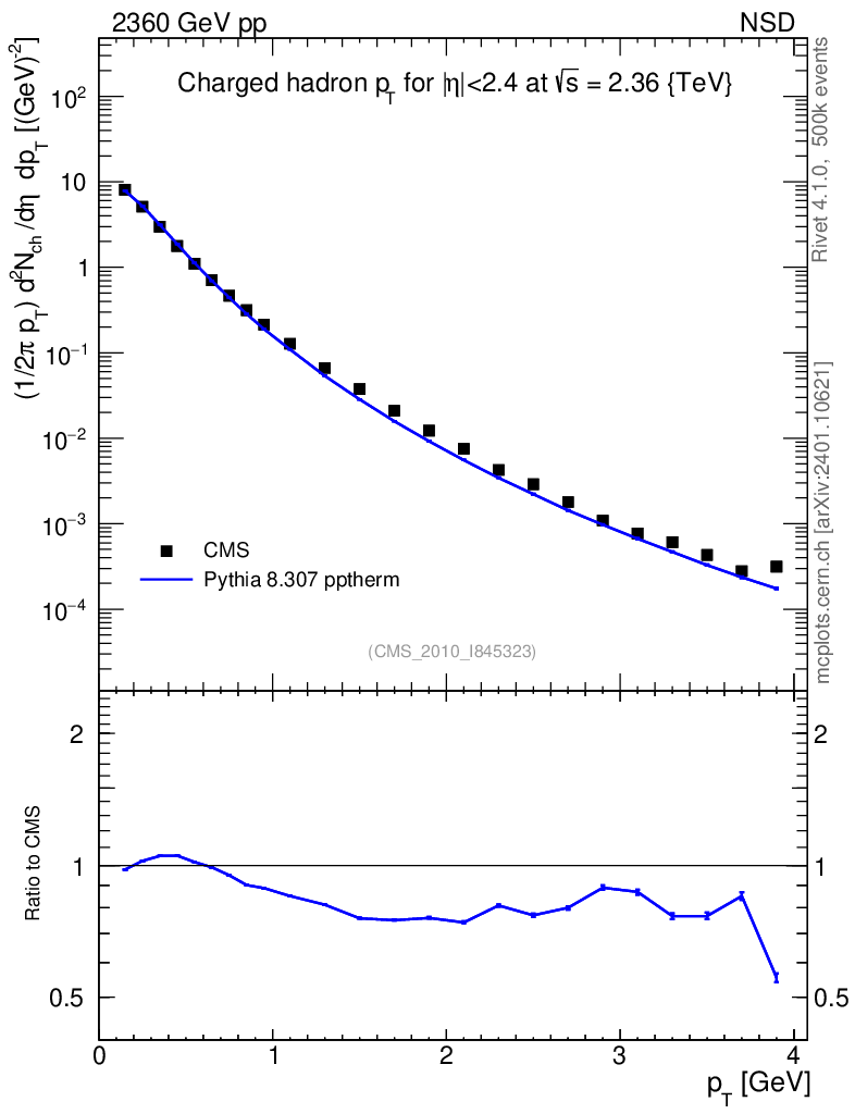 Lines: data, pythia8 8.307 pptherm |