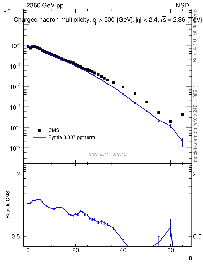 Lines: data, pythia8 8.307 pptherm |