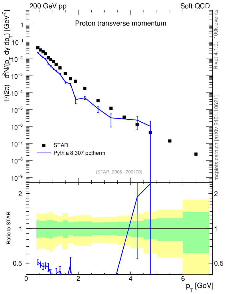 Lines: data, pythia8 8.307 pptherm |