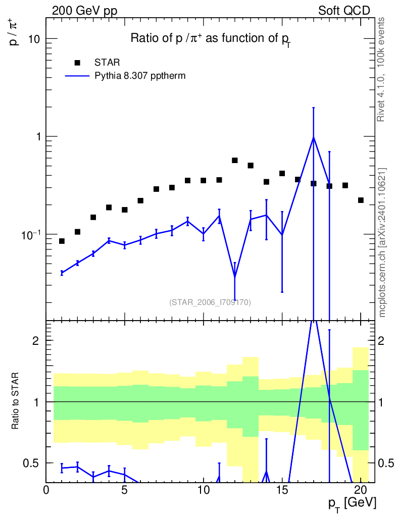 Lines: data, pythia8 8.307 pptherm |