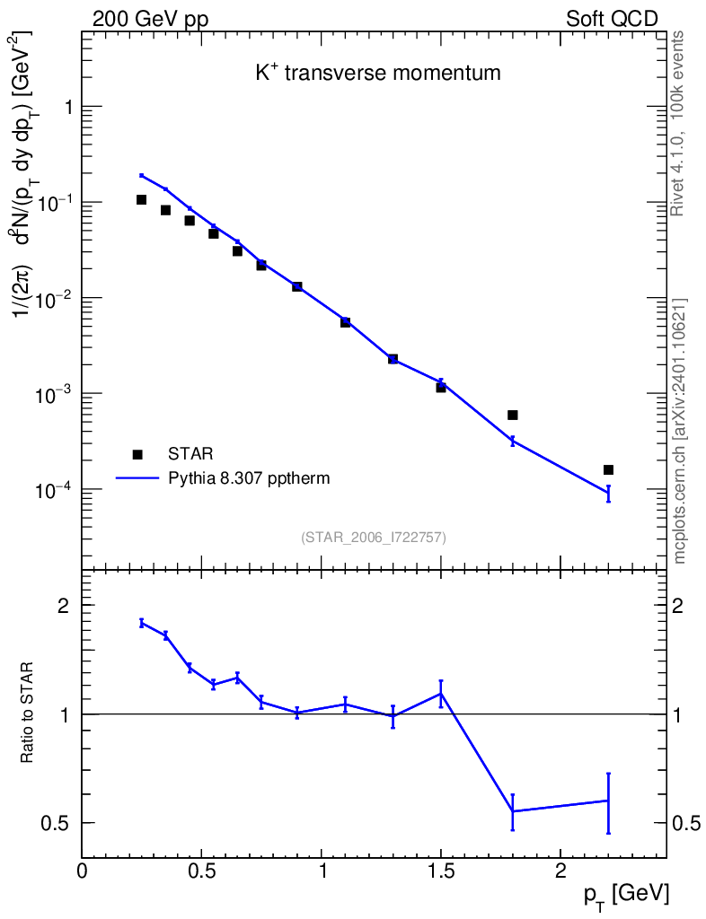 Lines: data, pythia8 8.307 pptherm |