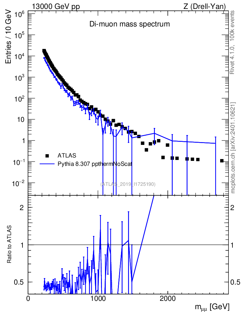 Lines: data, pythia8 8.307 ppthermNoScat |