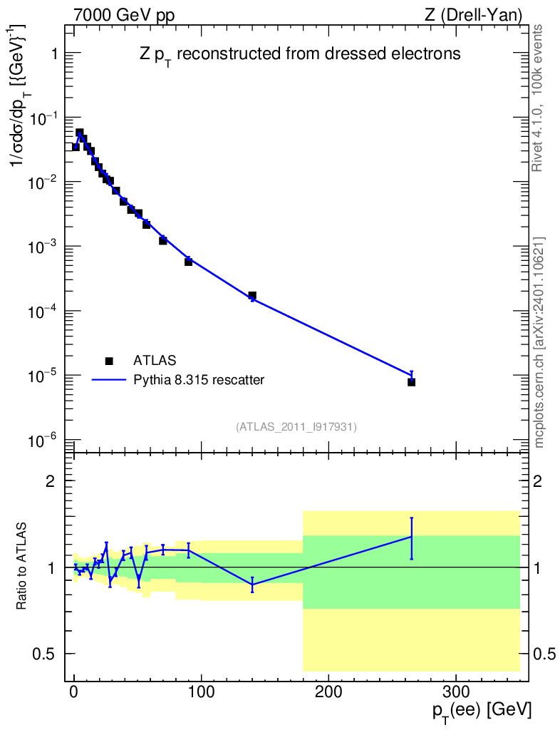 Lines: data, pythia8 8.315 rescatter |