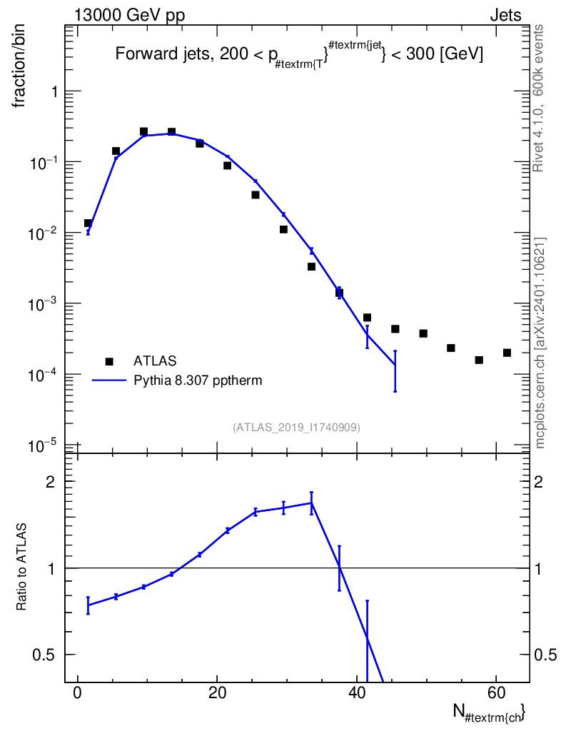 Lines: data, pythia8 8.307 pptherm |