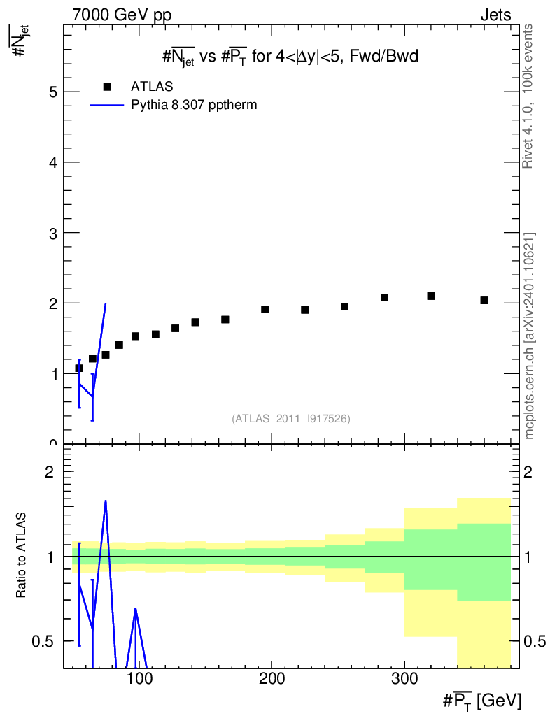 Lines: data, pythia8 8.307 pptherm |