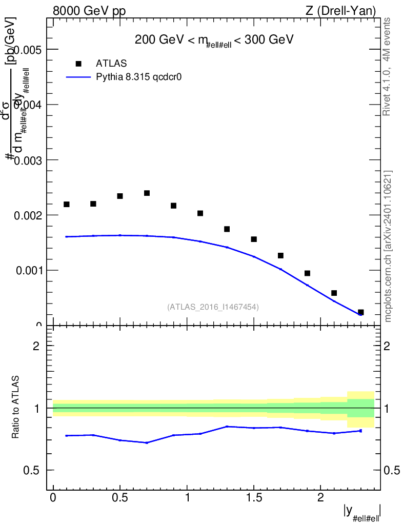 Lines: data, pythia8 8.315 qcdcr0 |