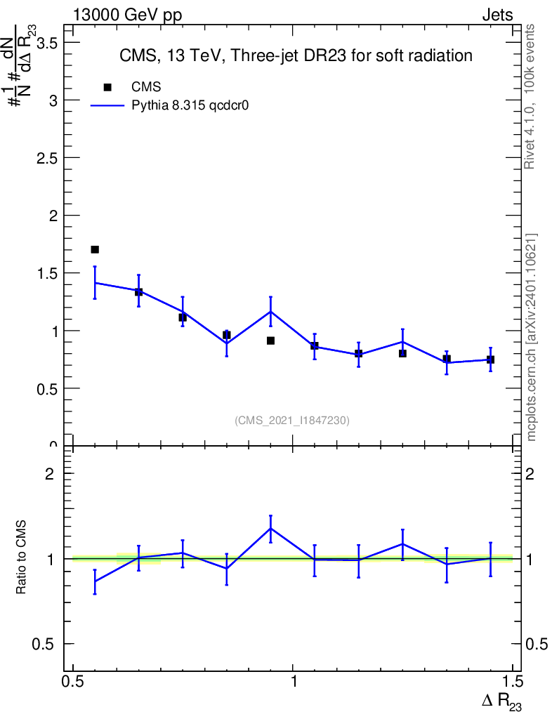 Lines: data, pythia8 8.315 qcdcr0 |