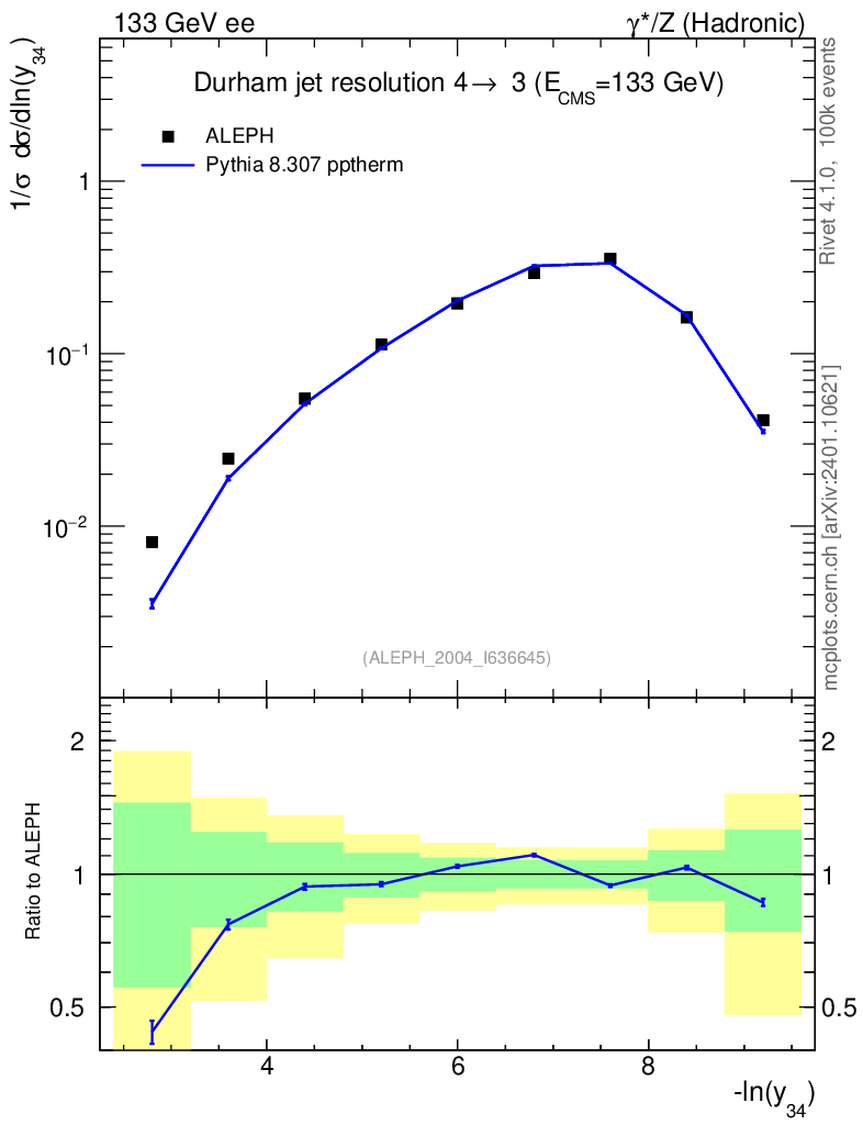 Lines: data, pythia8 8.307 pptherm |