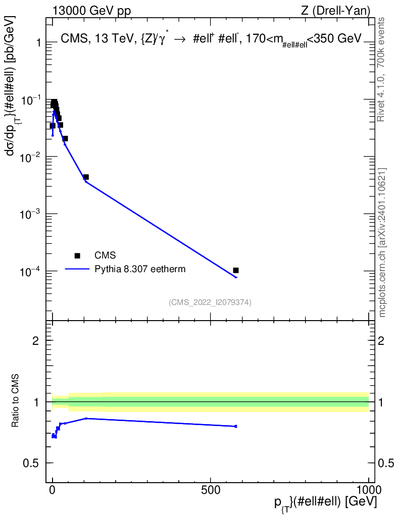 Lines: data, pythia8 8.307 eetherm |