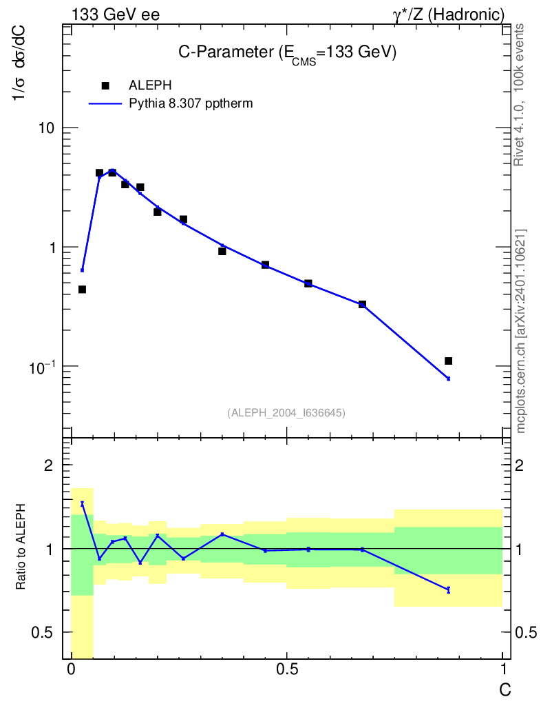 Lines: data, pythia8 8.307 pptherm |