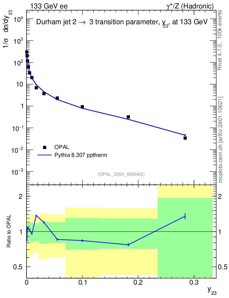 Lines: data, pythia8 8.307 pptherm |