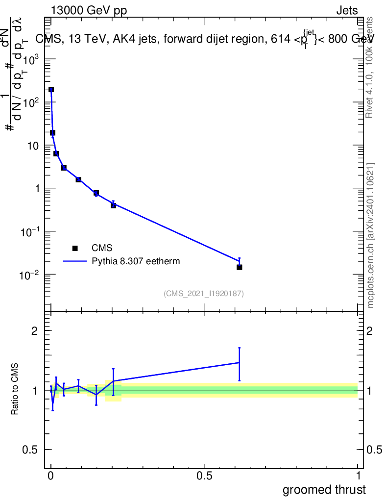 Lines: data, pythia8 8.307 eetherm |