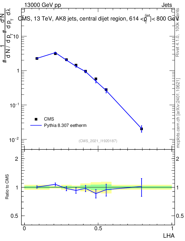 Lines: data, pythia8 8.307 eetherm |
