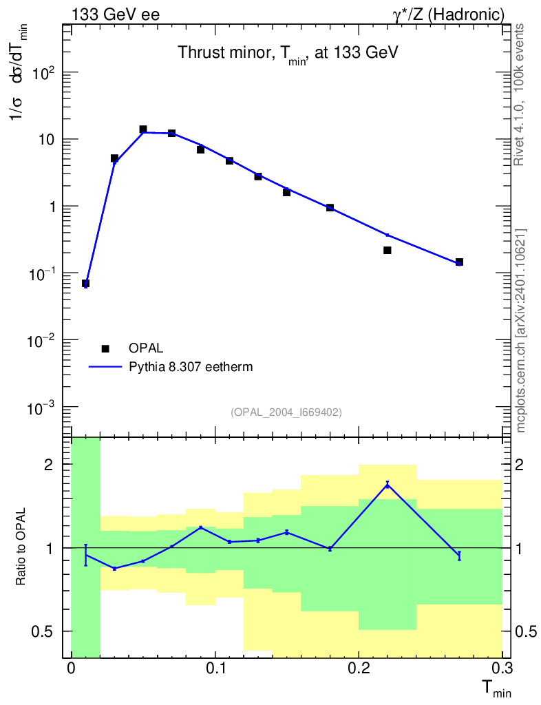 Lines: data, pythia8 8.307 eetherm |
