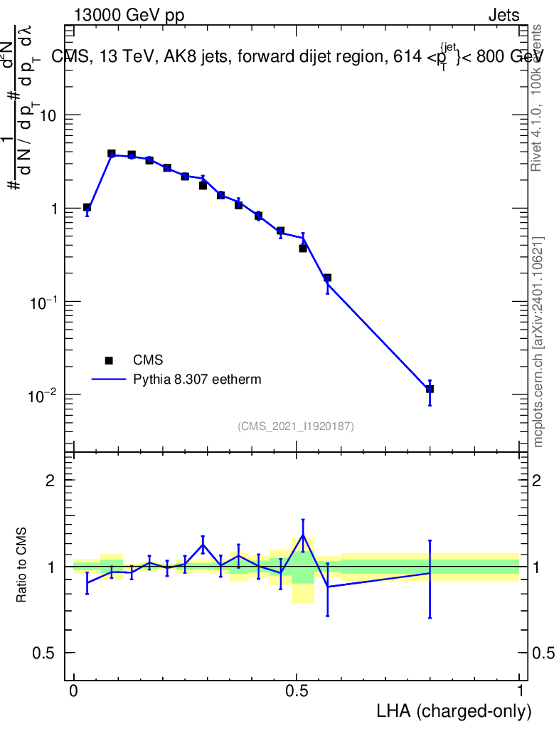 Lines: data, pythia8 8.307 eetherm |