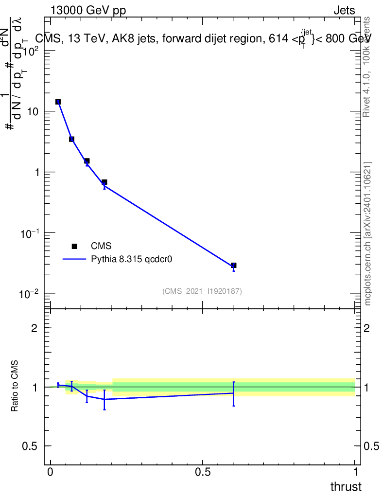 Lines: data, pythia8 8.315 qcdcr0 |