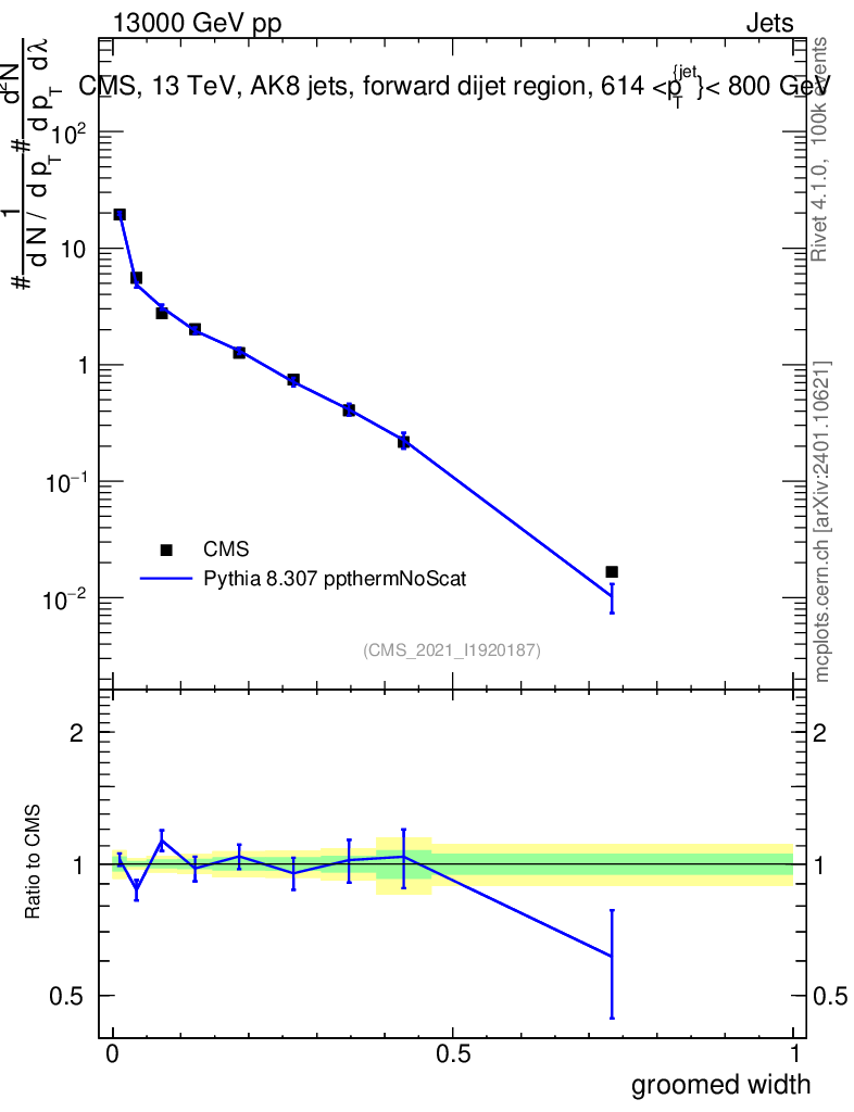 Lines: data, pythia8 8.307 ppthermNoScat |