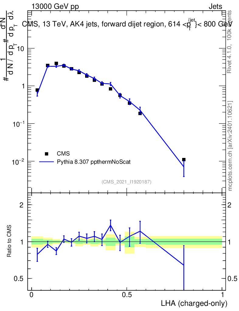 Lines: data, pythia8 8.307 ppthermNoScat |