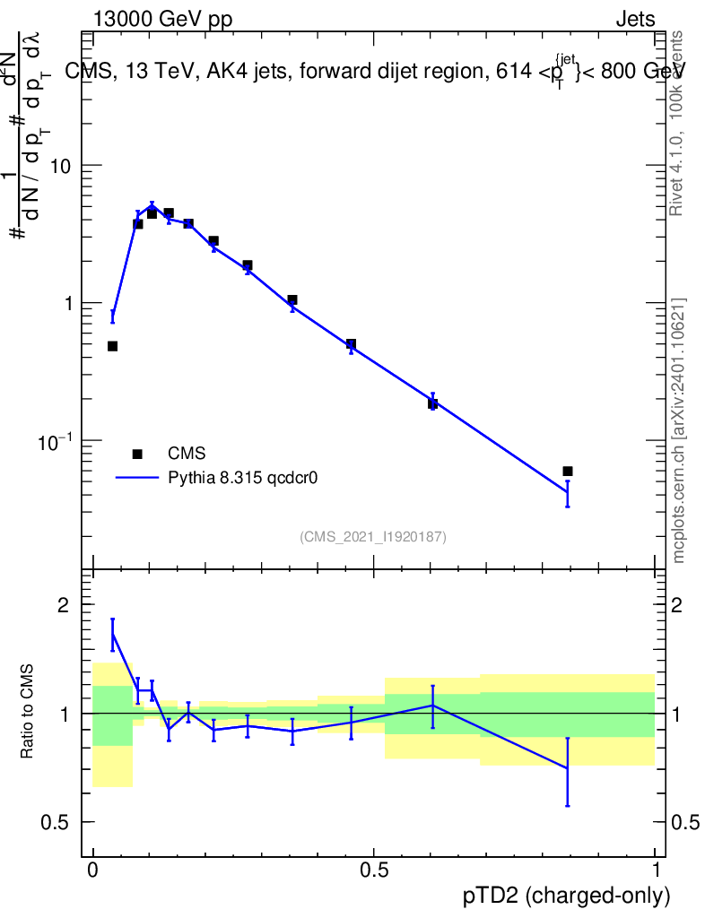 Lines: data, pythia8 8.315 qcdcr0 |