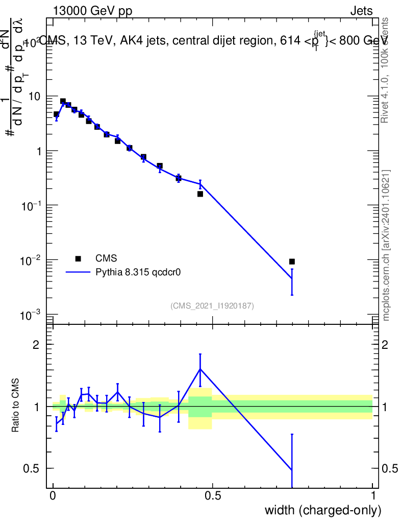 Lines: data, pythia8 8.315 qcdcr0 |