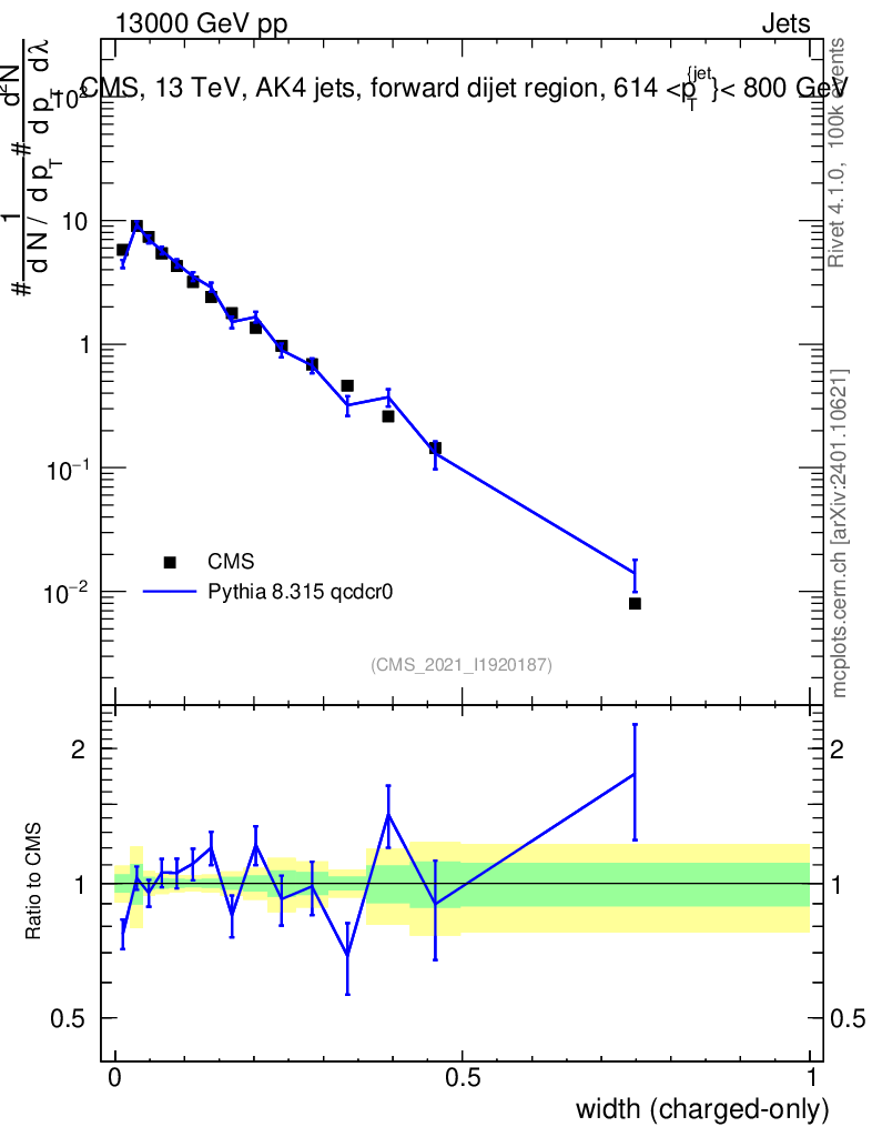 Lines: data, pythia8 8.315 qcdcr0 |
