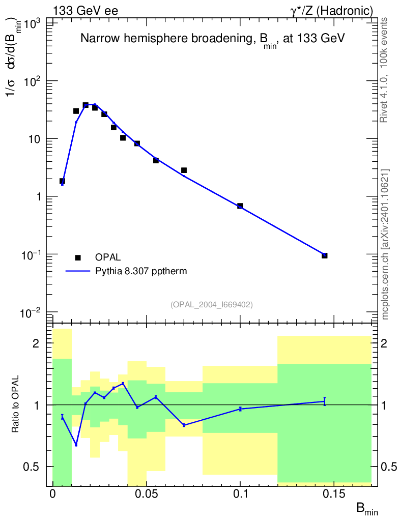 Lines: data, pythia8 8.307 pptherm |