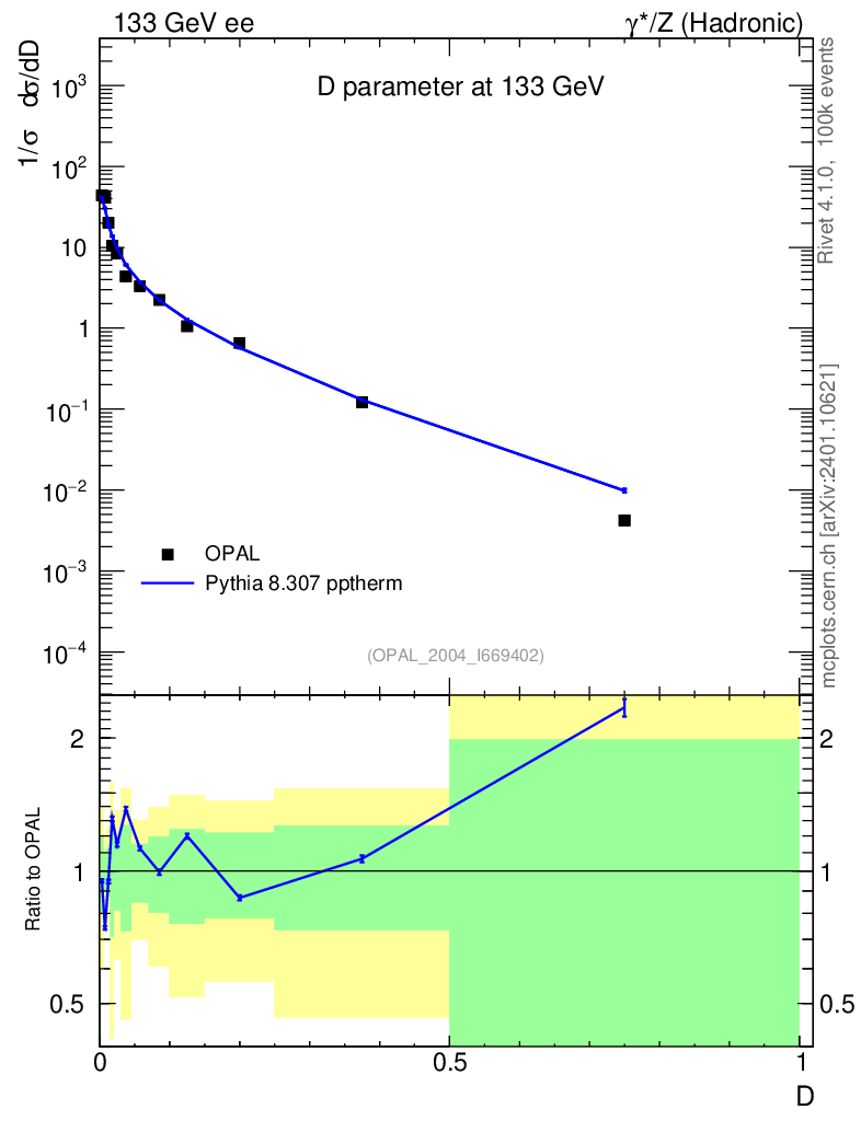 Lines: data, pythia8 8.307 pptherm |