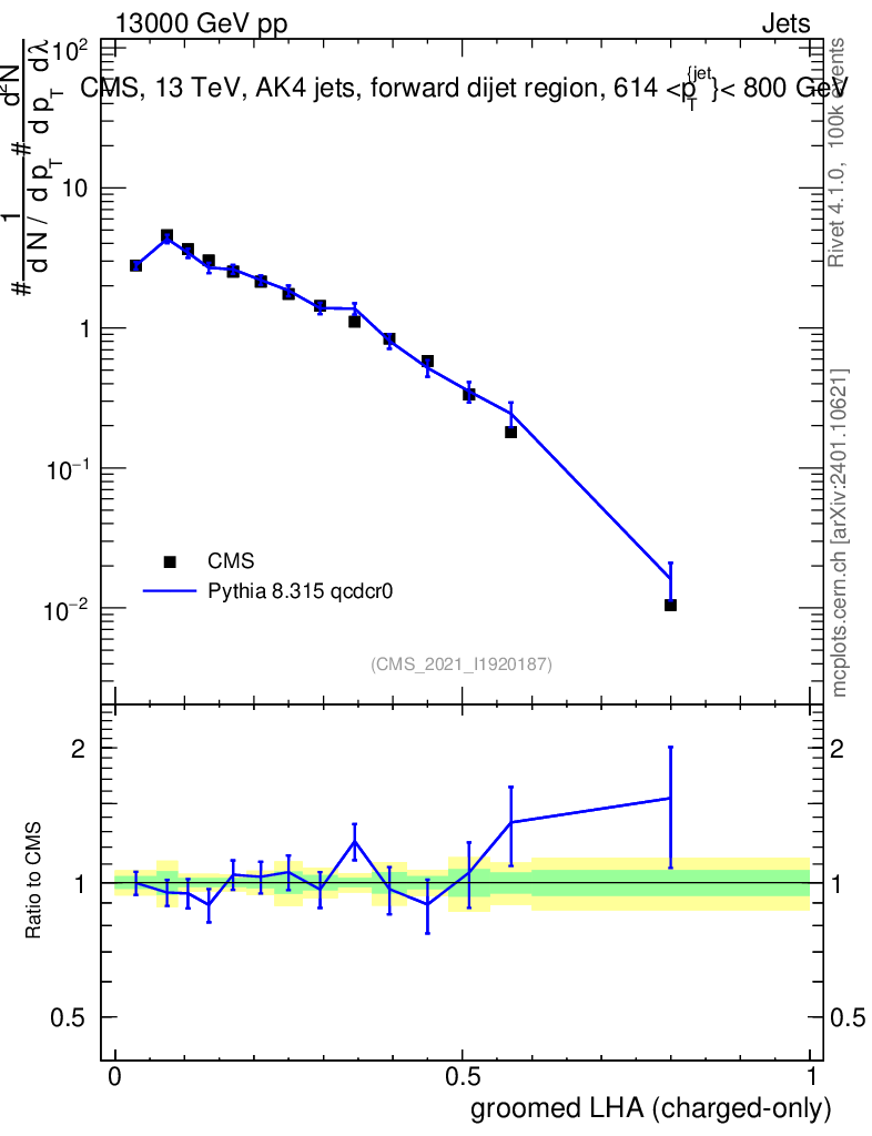 Lines: data, pythia8 8.315 qcdcr0 |