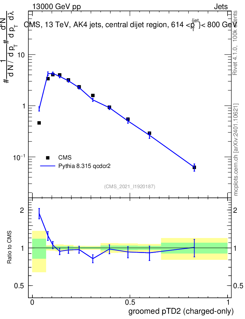 Lines: data, pythia8 8.315 qcdcr2 |