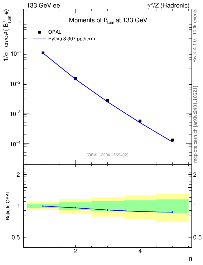 Lines: data, pythia8 8.307 pptherm |