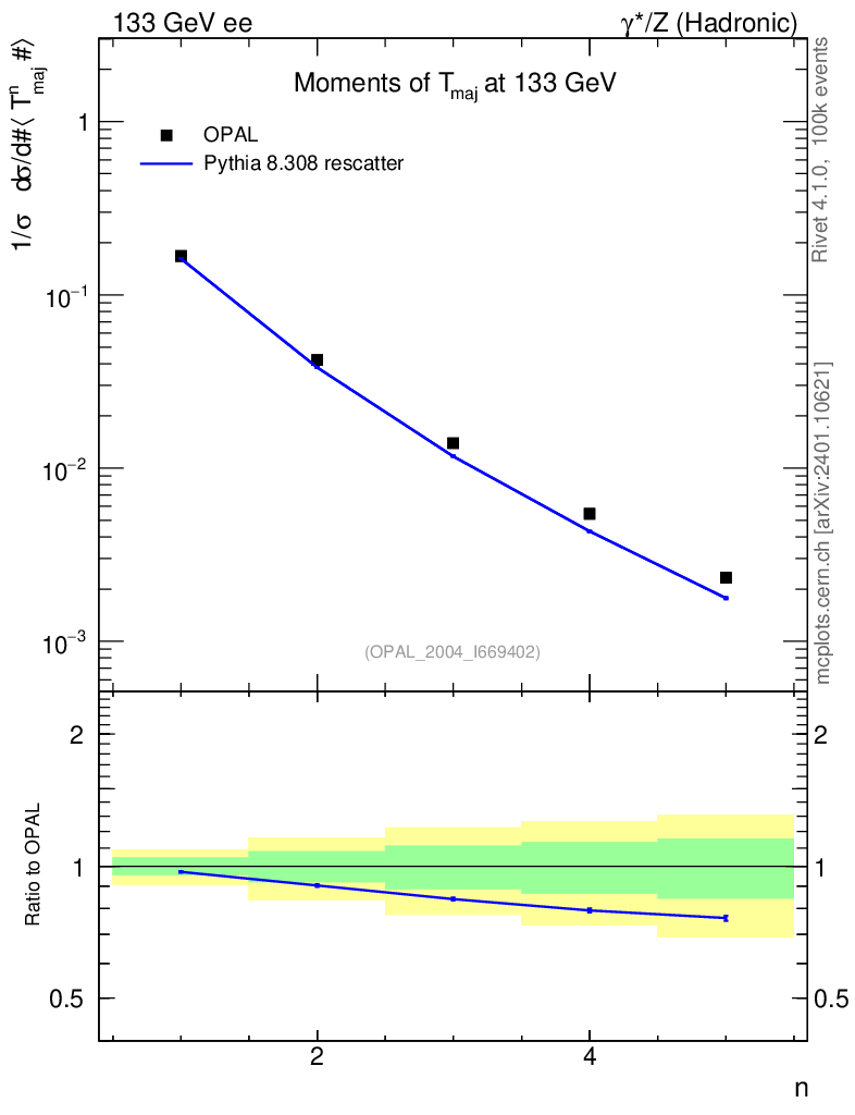 Lines: data, pythia8 8.308 rescatter |