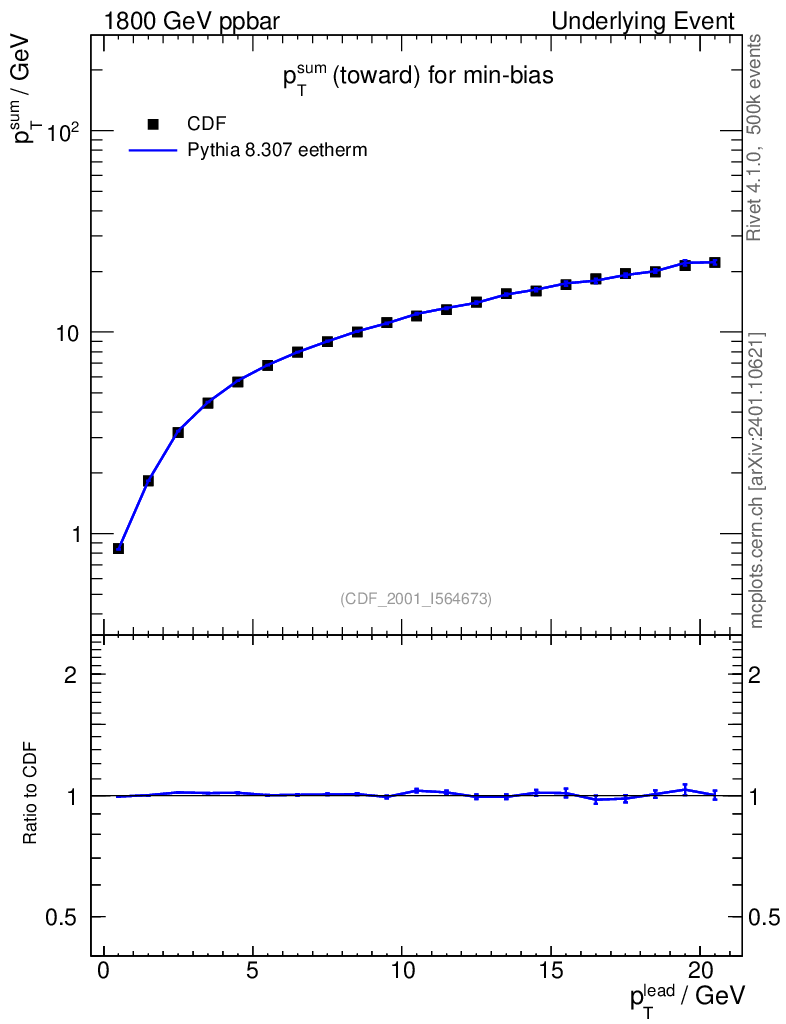 Lines: data, pythia8 8.307 eetherm |