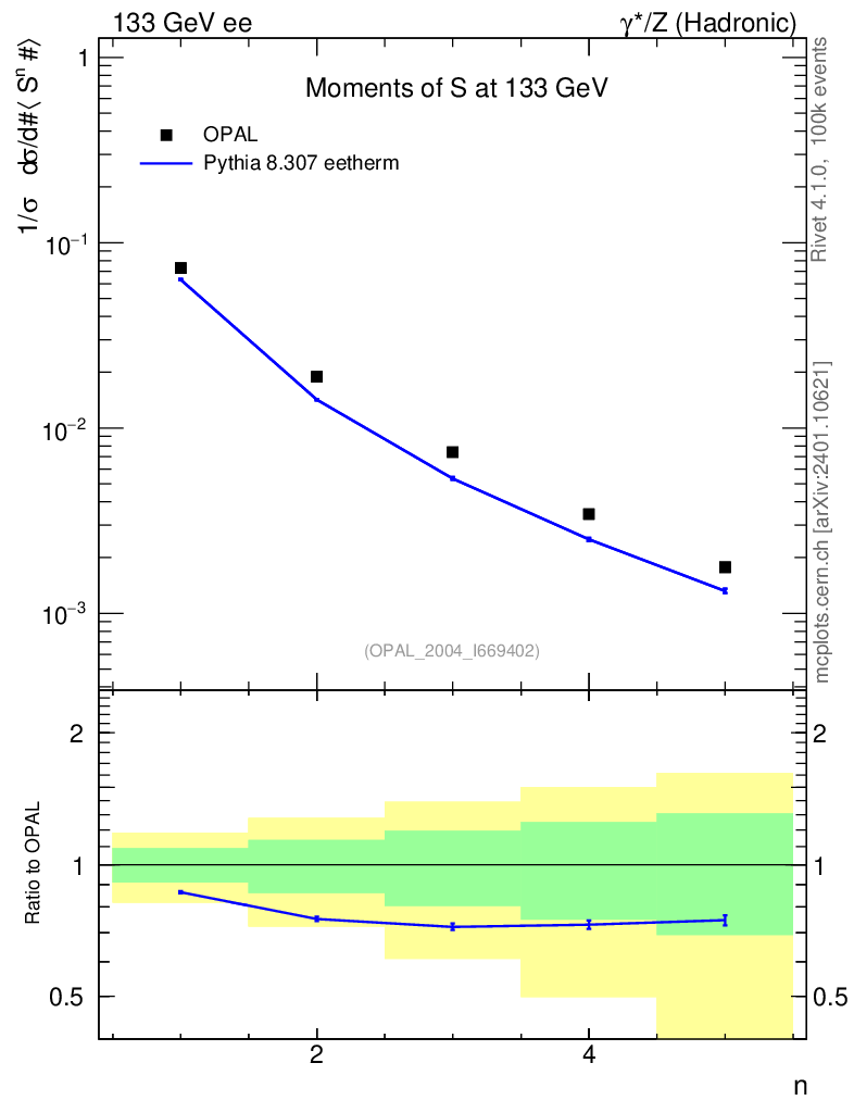 Lines: data, pythia8 8.307 eetherm |