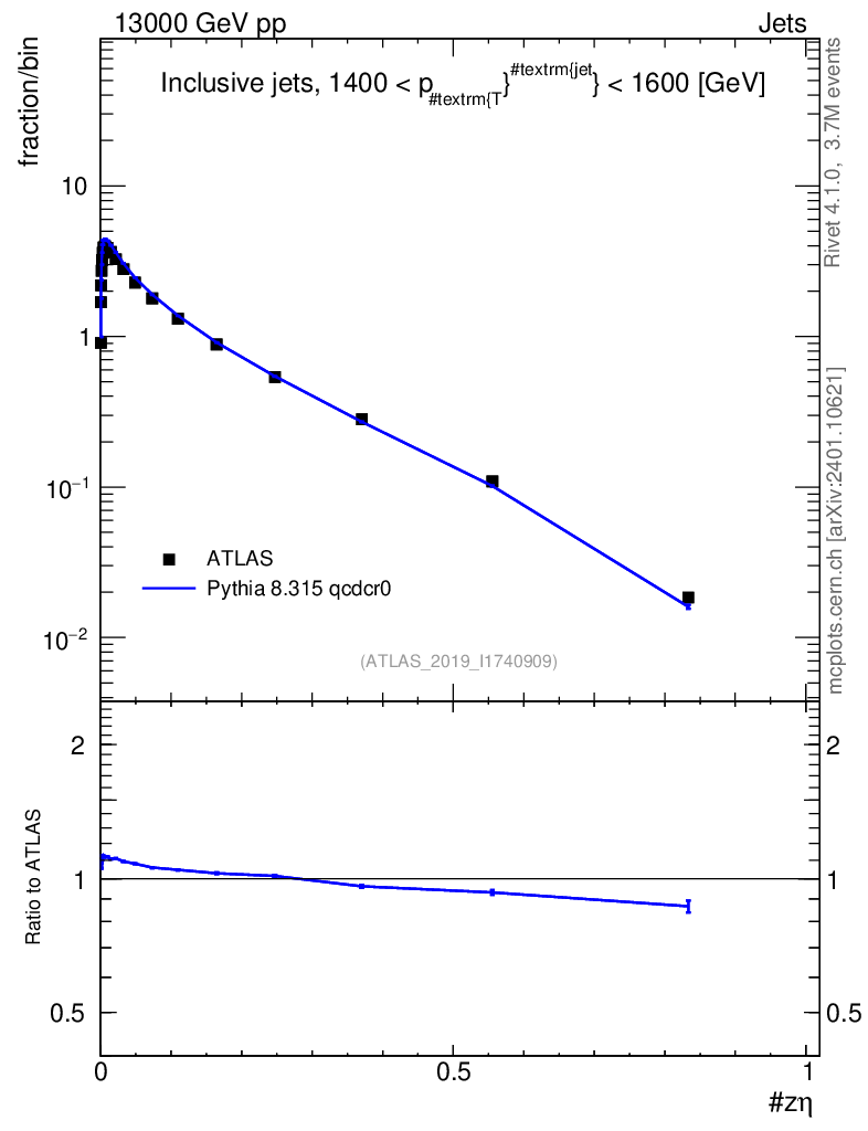 Lines: data, pythia8 8.315 qcdcr0 |