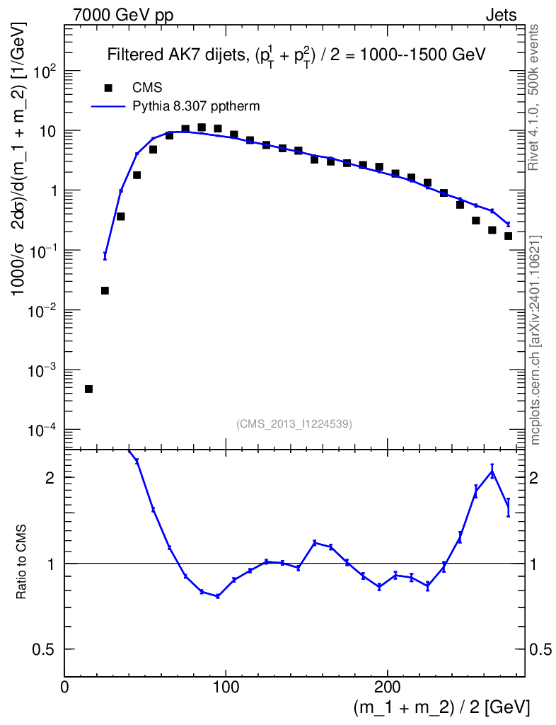 Lines: data, pythia8 8.307 pptherm |