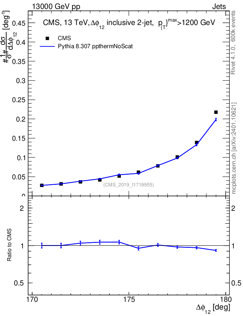 Lines: data, pythia8 8.307 ppthermNoScat |